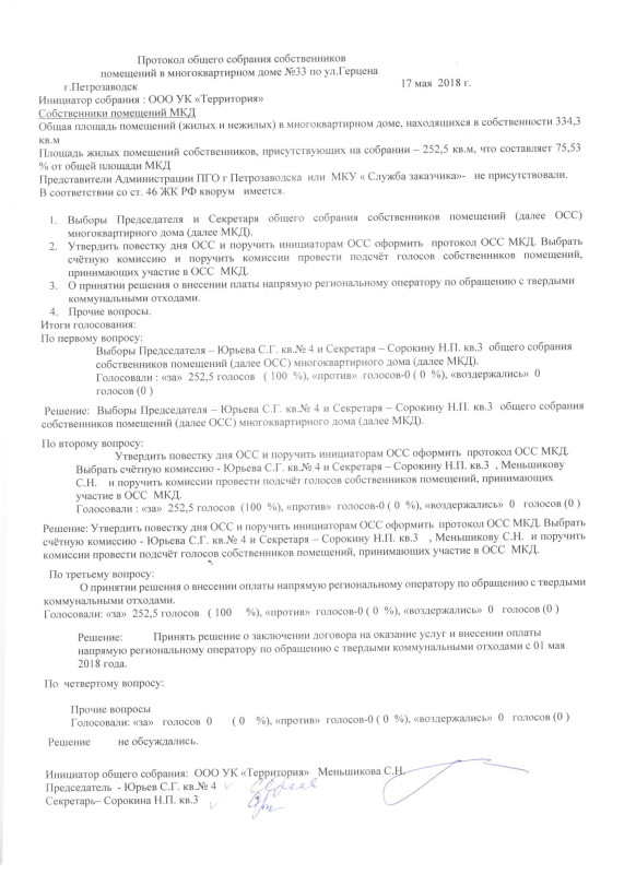 Договор управления МКД ООО УК Территория